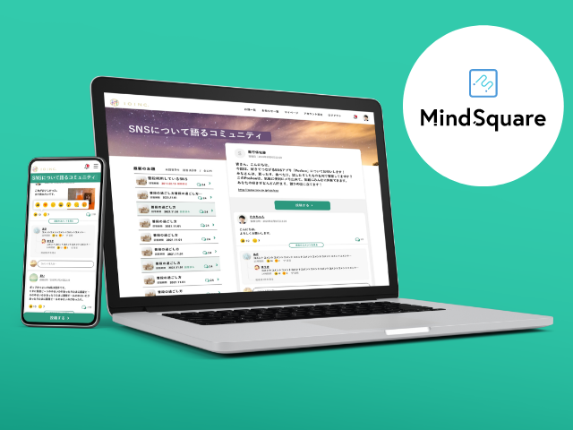 オンラインコミュニティリサーチ(MROC)のプラットフォーム「マインドスクエア」。MROCとは、オンライン上にリサーチ専用のコミュニティを形成し、対話・交流を通じて行うハイブリッド型の調査手法。MindSquareは、MROCのあらゆるアプローチ(アドホック、常設、ブランデッド、ファンコミュニティなど)に対応可能です。